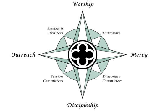 Compass Points – Tenth uses compass points to represent key ministry focuses. It is included below.